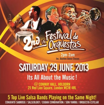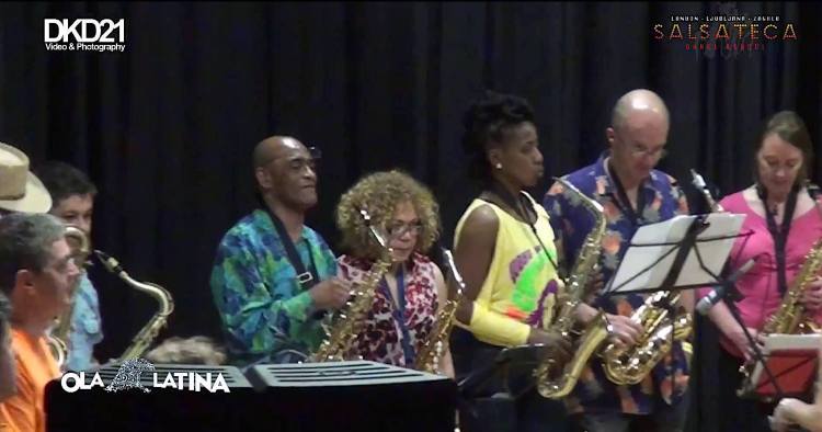 “Sara McGuinness & Elpidio Caicedo lead a stunning band line-up, setting the Festival stage alight with cha cha cha, son, mambo & Latin jazz, in original arrangements that showcase every instrument in the band.“